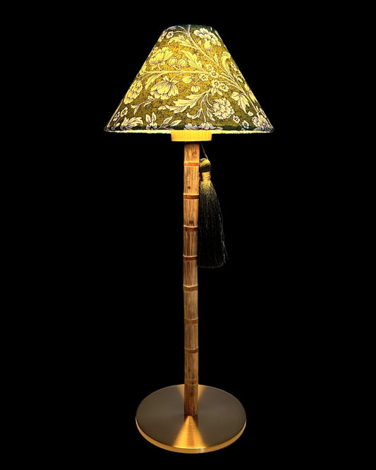 CORDLESS BAMBOO LAMP and Custom Lampshade ('Carnations in Moss Green')