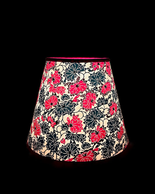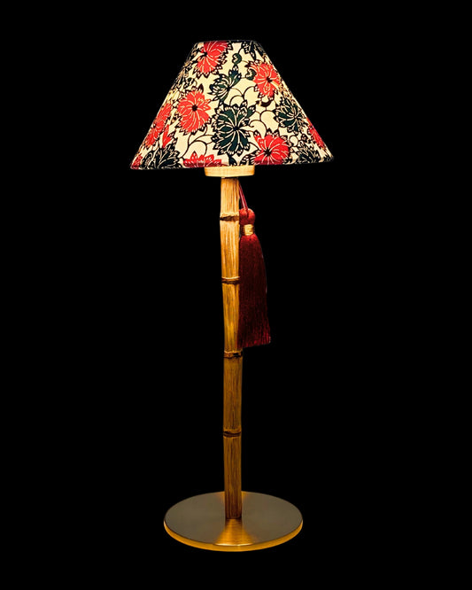 CORDLESS BAMBOO LAMP and Custom Lampshade ('Dahlias in Crimson')