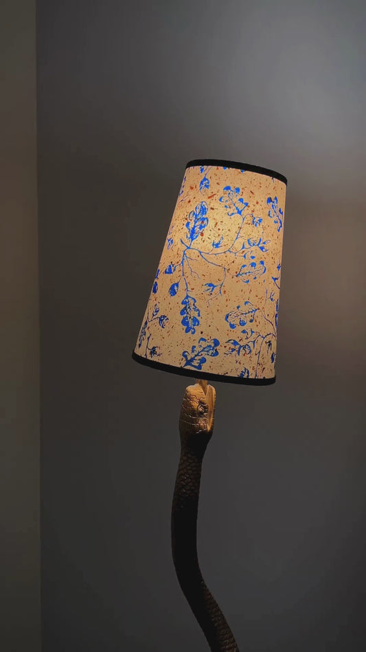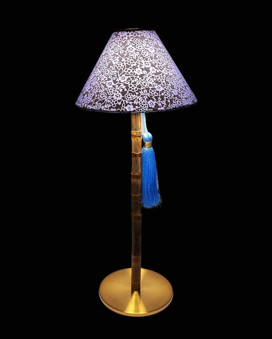 CORDLESS BAMBOO LAMP and Custom Lampshade ('Forget-me-nots in Icy Blue')