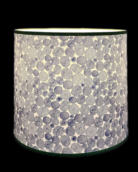 Blue Chrysanthemums on White Lampshade